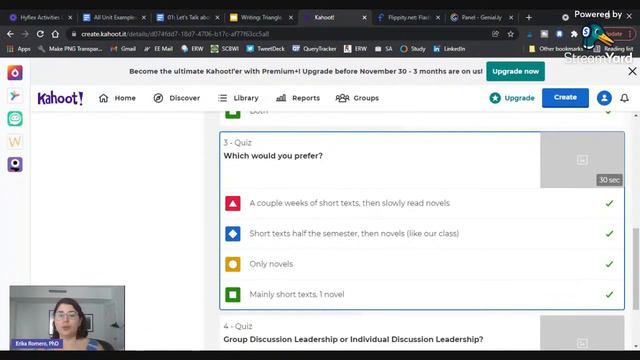 My Favorite EdTech Tools | November Livestream In today's livestream, I'll share my favorite edtech tools that I love to use when teaching college courses. I focus on free edtech tools, though most of them also have a paid option. For edtech tutorials, check out my playlist below. If you're new to using edtech, these videos can help you get started quickly. EdTech Tutorials Playlist: https://www.youtube.com/playlist?list=PL_YC6ZMWyQ-xMQqtqU2WW3dWWS9TRisgj Consult Call Service: https://ever-educating.teachable.com/p/1-hour-consult-call 0:00 Intro 1:06 Loom 4:55 Google Suite 9:20 Pear Deck 12:01 Kahoot 17:32 Flippity 23:00 Genially 29:00 Final Thoughts *ADDITIONAL RESOURCES* Livestreams: https://www.youtube.com/playlist?list=PL_YC6ZMWyQ-yciPZ9YphGOdyJjChPGsDW BEST LOOM PRO FEATURES | EVERYTHING TEACHERS CAN DO WITH LOOM WHEN TEACHING ONLINE https://youtu.be/gvZRRIuK4LE Create Interactive Slides and Activities for Students | Genially Overview https://youtu.be/IzHSbkJ2EgQ Pear Deck Tutorial for Teachers | Use in F2F Classes https://youtu.be/FQSSchYDDiw Ideas for Using the Google Suite When Teaching | Docs, Slides, Spreads https://youtu.be/QcXwevFtqTc FLIPPITY TUTORIAL FOR COURSE GAMIFICATION | EDTECH FOR THE COLLEGE CLASSROOM https://youtu.be/yE52LaHiEpE CREATE A RANDOM NAME GENERATOR FOR STUDENTS IN LESS THAN 5 MINUTES (FREE) https://youtu.be/vqZfKA56o_I FLIPPITY TUTORIAL AND ACTIVITY IDEAS: RANDOM ACTIVITY PROMPT GENERATOR FOR TEACHERS https://youtu.be/tP0ghJxrn_A HOW TO USE GOOGLE SLIDES TO MAKE INTERACTIVE PDFS | GUIDES, CHECKLISTS, INTERACTIVE NOTEBOOKS https://youtu.be/cfR9DnFofhE Basic Notion Overview for Teachers | Teacher Summer Series, Episode 8 https://youtu.be/LkpRoADdSfQ HYFLEX/HYBRID TIPS PLAYLIST https://www.youtube.com/playlist?list=PL_YC6ZMWyQ-wrbfEeB2LqVtFC2Jmn1s0l — Have a suggestion for future video topics? Fill out this quick survey! https://forms.gle/Fbuw4D2AQ56irJgG9 — Social Media: INSTAGRAM: https://www.instagram.com/evereducating TWITTER: https://www.twitter.com/evereducating PINTEREST: https://www.pinterest.com/evereducating — If you're a new college instructor, here are my top ten teaching tips: https://www.evereducating.com/10-teaching-tips-new-college-instructor If you want to make sure you don't miss any future teaching tips, tools, or resources, join my blog's email list. You'll gain access to my resource library when you join the community! Blog Email List: https://bit.ly/2vpan6I — *RECOMMENDATIONS* Disclaimer: Some of these links are affiliate links and referral links. As an Amazon Associate, I earn from qualifying purchases. Software I Use: - Canva (creating graphics/multimodal materials): https://www.canva.com/join/craft-comfort-droplet - Flixier (video editing software): https://flixier.com/?fpr=erika42 - Trello (free project management tool): https://trello.com/erikar7/recommend - SiteGround (website hosting): https://www.siteground.com/recommended?referrer_id=8012656 My YouTube Gear: - Phone Tripod with Flexible Legs: https://amzn.to/2Qa0owh - Lapel Microphone: https://amzn.to/3heyTgX - Ring Light: https://amzn.to/3aDFZt0 - Canon M50: https://amzn.to/3hTzqWP