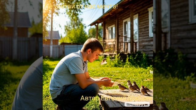 А за околицей, в тиши, защебетали воробьи, Раскрыв себя на всю округу, запели солнцу — жизни кругу! И зарумянился рассвет, заполонив весь белый свет. Укрывшись в зареве тепла, птенец расправил два крыла! Не улетай от нас, мечта, храни и верь, ты нам нужна! И пусть сомненьем заперта, взлети к надежде в небеса! Не будет света, красоты, любовь угаснет без зари, Пока ты спишь, не видя сна, потухнет в небе доброта! Рукой ты хлеба покроши и сердцем душу отвори, И пусть щебечет нам с крыльца два крохи, нежности творца! Красивый, праведный напев, раскрой себя и их согрев, И каждым пёрышком тебя укроет неги чистота! Не улетай от нас, мечта, храни и верь, ты нам нужна! И пусть сомненьем заперта, взлети к надежде в небеса! Не будет света, красоты, любовь угаснет без зари, Пока ты спишь, не видя сна, потухнет в небе доброта! Пускай летит в путь за тобой рассвет, надежда и покой! Не затихают никогда и знают: злоба умерла! А за околицей, в тиши, защебетали воробьи, Раскрыв себя на всю округу, запели солнцу — жизни кругу! Автор Евгений Шабаев 26.06.2025 г.
