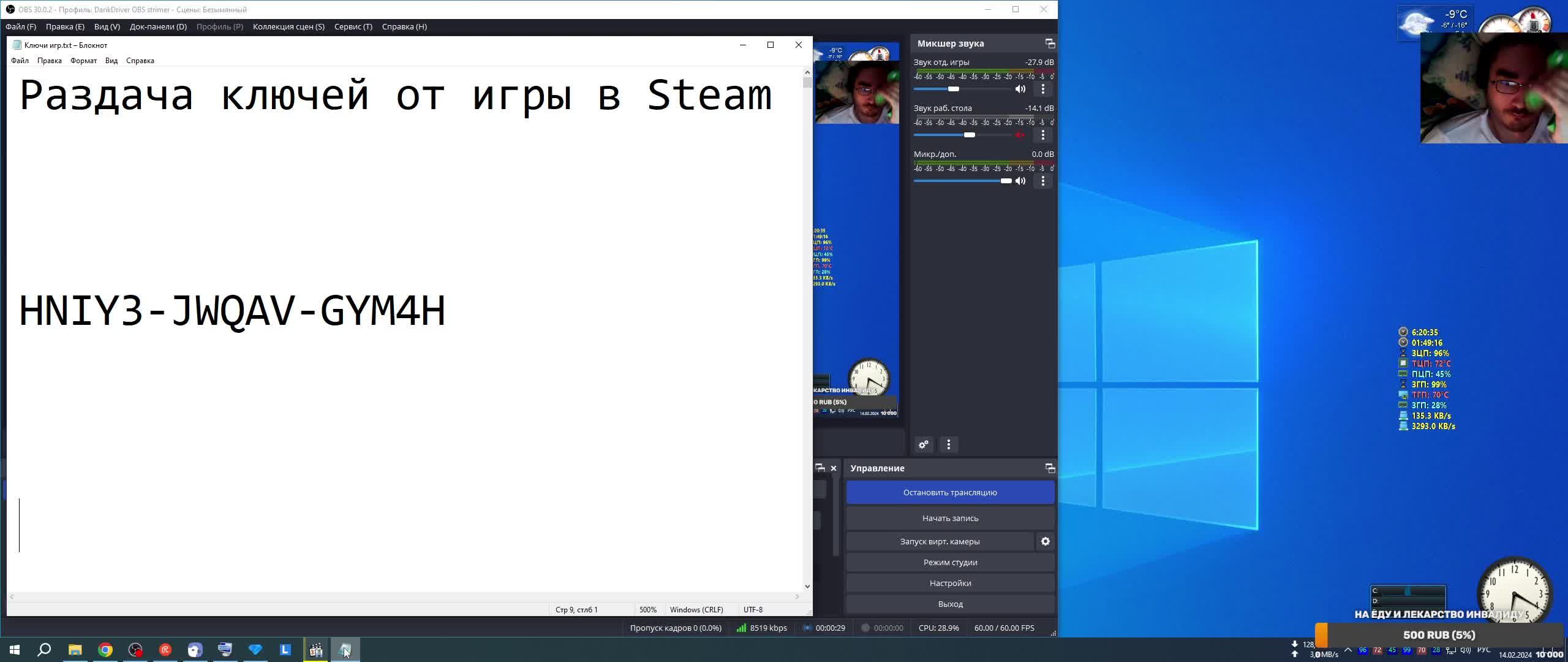 Раздача ключей от игры в Steam
