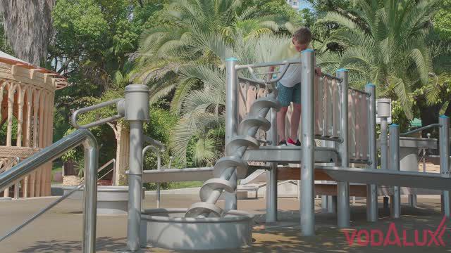 Подробнее: https://vodalux-fontan.ru/news/474/1231.html Водная игровая площадка построена на территории санатория Заполярье в Сочи. Она состоит из различных компонентов: водокачка, шнековый механизм, лотки с задвижками, а также чаши для воды. При производстве игровой площадки использованы высококачественные материалы: Металлические компоненты изготовлены их нержавеющей стали. Высокая коррозионная стойкость достигается благодаря тонкой пленке оксида хрома толщиной в тысячные доли миллиметра устойчивой к механическим повреждениям и царапинам. Деревянные детали выполнены из особого вида древесины - белой акации (Robinia pseudoacacia). Эта древесина обладает необычайной твердостью и прочностью, превосходящей дуб. Эти свойства сохраняются даже при контакте с водой. Кроме того, белая акация устойчива к воздействию гнилостных бактерий и вредителей. Водная площадка это веселая и развивающая игра, которая никого не оставит равнодушным. Несомненно, строительство такой площадки на территории санатория значительно повысит его привлекательность для гостей.