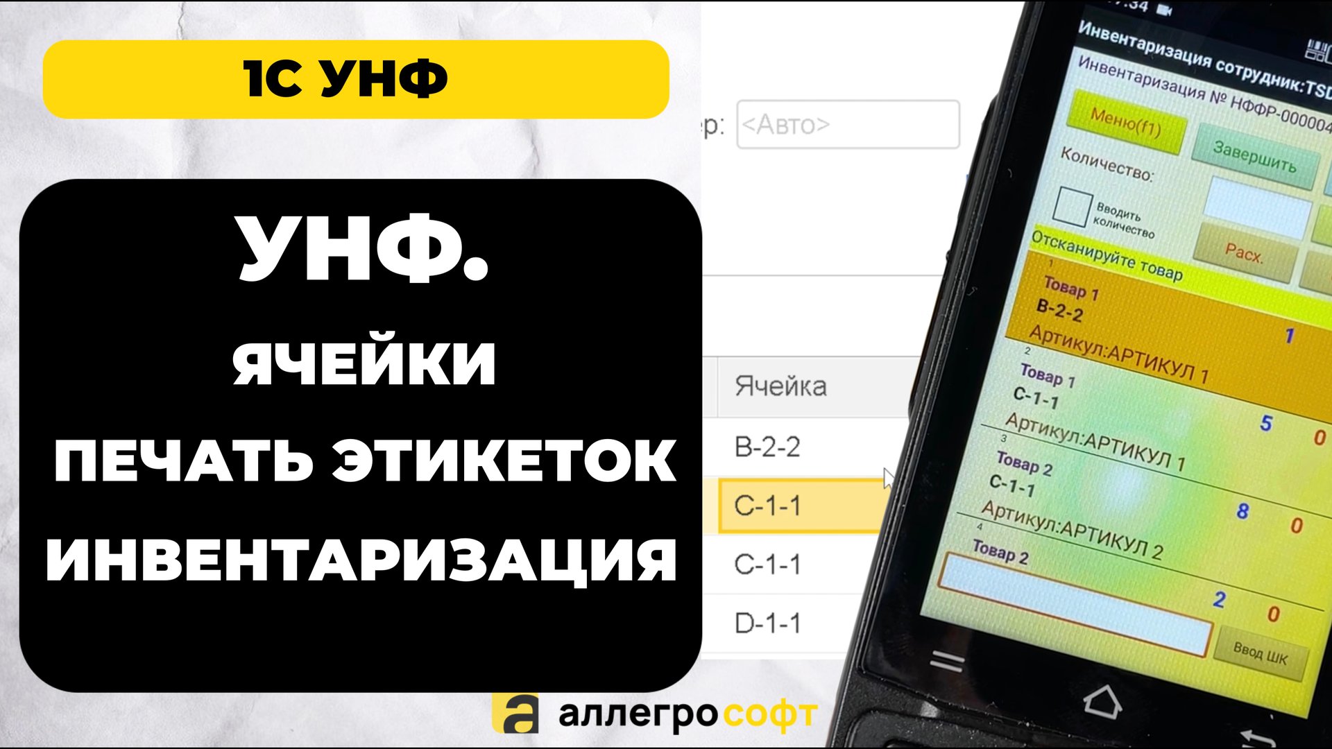 Автоматизация склада, магазина, производства. Внедрение ТСД. Если вы занялись автоматизацией склада, то мы бесплатно предлагаем скачать обработку позволяющую сгенерировать и запустить на печать этикетки для мест хранения в 1С УНФ. https://allegrosoft.ru/n/pechat-i-generaciya-etiketok-yacheek-v-unf-1s Так же описали вариант автоматизации инвентаризации ячеек в Управление Нашей Фирмой. - Отбор по необходимым местам хранения; - Заполнение табличной части документа согласно учетным количествами в ячейке; - Автоматизация инвентаризации УНФ на ТСД. Задача кладовщика сканировать товара, QR ячейки для подтверждения места и при необходимости вводить количества. Итогом работы являются заполненное поле «Количество» и смена статуса документа в соответствии с настройками. AllegroSoft - https://allegrosoft.ru/ канал об автоматизации бизнеса ★Автоматизация магазина и склада, работа с маркировкой. ★Загрузка данных на ТСД из 1с. ★Ускорение комплектации и сбора заказов на 50%. ★Ускорение инвентаризации склада на 70%. ★Возможность автоматизации “ручных” процессов на складе/магазине. Заходите, смотрите и подписывайтесь на канал! Мы в интернете: ➧ Сайт - https://allegrosoft.ru/ ➧ Landing Page - https://sznak.ru/ ➧ Почта - info@allegrosoft.ru ➧ Телефон - +7 (499) 213-02-73 Наш канал: https://www.youtube.com/@allegrosoft_company