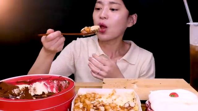하트 티라미수인절미 딸기 티라미수 색다른 티라미수 먹방 Injeolmi Strawberry Tiramisu roll crepe ASMR Mukbang