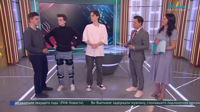 В студии программы «Утро в Петербурге» студенты факультета систем управления и робототехники Университета ИТМО Иван Смирнов, Алексей Ледюков, Леонид Нагорный и Фёдор Петриков.