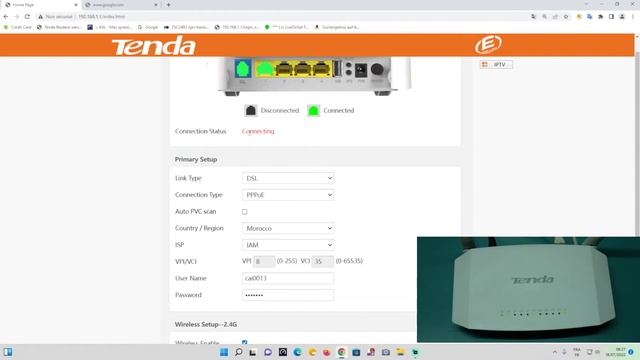 ضبط اعدادات روتور بدون تقطعات TENDA D301 V2 ADSL INTENET MOROCCO VPI 8/VCI 35