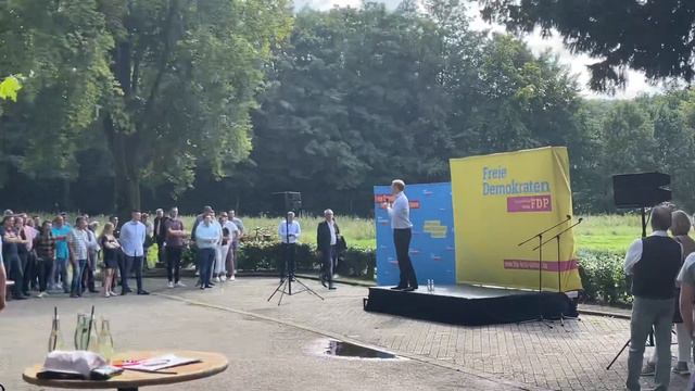Die Leinwand wurde durch einen Windstoß umgestoßen und von Lindner gut gekontert aufgehalten. Klasse Vortrag von Christian Lindner in Raesfeld am 21.08.2021 @ChristianLindner #FDP #water2healthsolutions #w2h