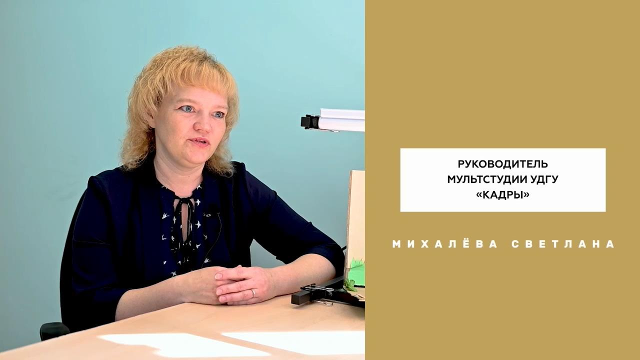 В рамках Года педагога и наставника продолжаем серию видеороликов о педагогах вуза, достигших высоких результатов в профессиональной деятельности В этом выпуске руководитель университетской студии мультипликации «Кадры» Светлана Михалёва расскажет, почему процесс обучения детей мультипликации является целостным комплектом развития личности ребёнка, чему в студии учатся дети, работая над мультфильмами в команде, с какими профессиями они знакомятся в процессе, какие масштабные проекты реализовывает сейчас студия и почему важно знакомить детей с классической литературой и поэзией. Деятельность мультипликационной студии в УдГУ реализуется Центром довузовского образования и включает курс «Развивающая анимация» для детей 1-5 классов.