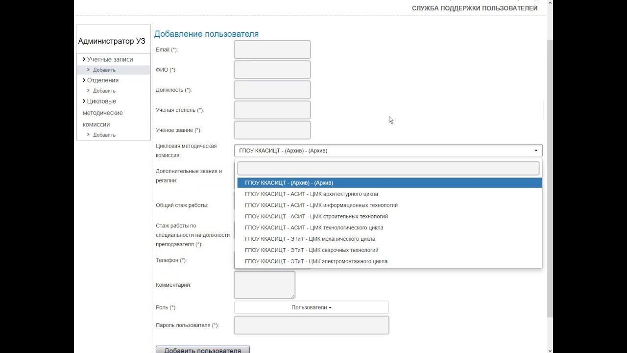 Видеоинструкция АРМ администратора УЗ СМЭД ЦОП СПО