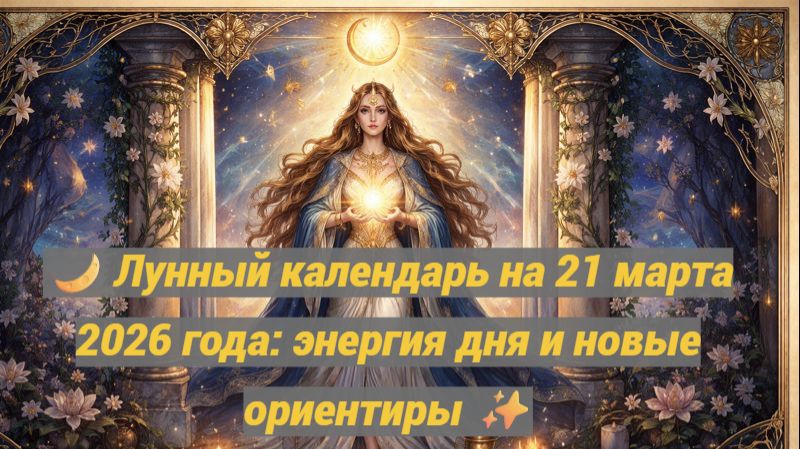 Лунный календарь на 21 марта 2026 года раскрывает энергетику дня, эмоциональный фон и внутренние процессы, связанные с обновлением и осознанием новых направлений. 🌙✨ Этот день может ощущаться как точка внутреннего перехода, когда важно отпустить прошлое и внимательнее прислушаться к своим истинным желаниям. Лунные энергии усиливают интуицию, помогают увидеть перспективы и почувствовать, куда стоит направить внимание и силы. 🔮💫 Благоприятное время для постановки целей, осознанных решений, планирования и работы с намерениями. Возможны инсайты или важные разговоры, которые помогут прояснить ситуацию и задать верный вектор движения. Не рекомендуется действовать импульсивно или идти на поводу у эмоций — спокойствие, честность с собой и внутренний баланс принесут наилучший результат. Используй этот день для гармонизации состояния, внутреннего обновления и уверенного шага вперёд в ритме Луны. ✨🌙 #лунныйкалендарь #21марта2026 #энергиядня #лунныйдень #луна #лунныеэнергии #астрология #эзотерика #осознанность #интуиция #ритмылуны #гармония #внутреннийбаланс #энергиялуны #календарьдня #духовныйрост #саморазвитие #лунныйпрогноз #деньлуны #настройдня #вдохновение #магиялуны #космическаяэнергия #лунныйритм #эзотерическоевидео #видеопрогноз #энергиявремени #март2026
