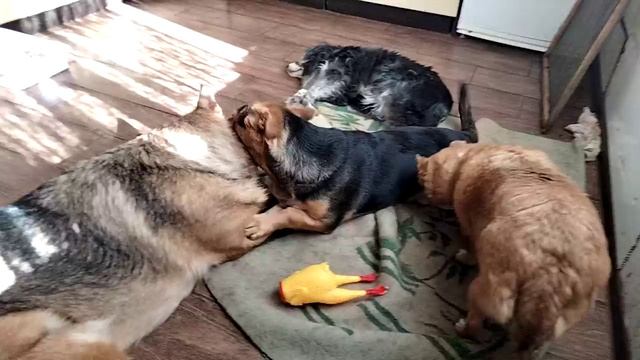 Лайза с Фунтиком не могут поделить курицу