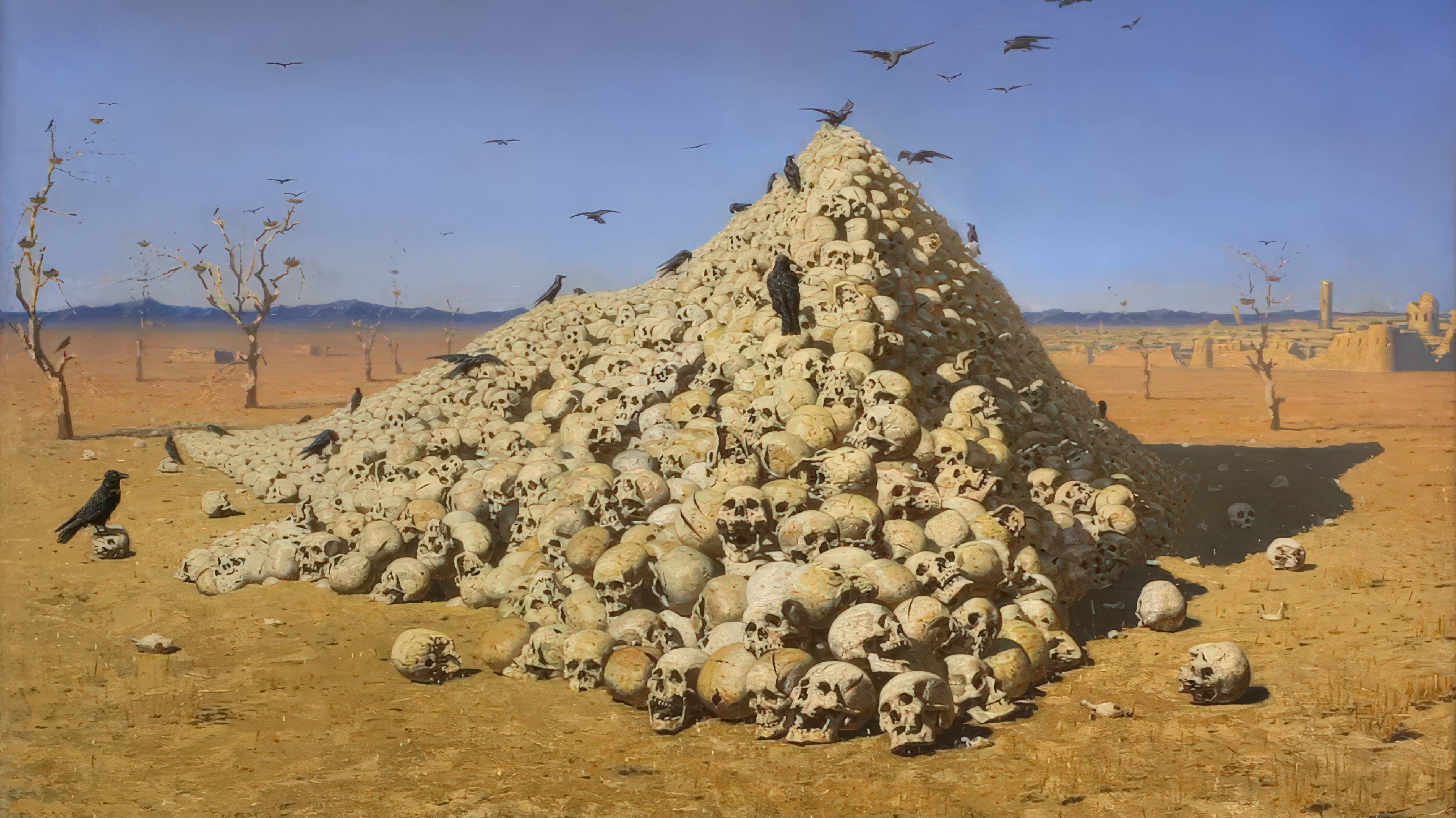 Василий Верещагин (1842–1904) — выдающийся русский художник-баталист, чье творчество охватывает широкий спектр тем и жанров. Его картины отличаются реалистичностью и глубоким эмоциональным воздействием, часто отражая ужасы войны и человеческие страдания. Верещагин начал свою карьеру с обучения в Морском кадетском корпусе, но вскоре переключился на искусство, учась в Императорской Академии художеств и в Париже. Его ранние работы включают этюды и зарисовки Кавказа и Средней Азии, где он запечатлел величественные горные пейзажи и сцены из жизни местных народов. Одной из ключевых тем в творчестве Верещагина стала война. Он участвовал в Русско-турецкой войне 1877–1878 годов, что нашло отражение в его знаменитых сериях картин, таких как "Туркестанская серия" и "Балканская серия". Эти работы демонстрируют не только батальные сцены, но и трагические последствия боевых действий для солдат и мирных жителей. Картины "Апофеоз войны" и "После атаки" стали символами антивоенного искусства. Кроме батальных сцен, Верещагин создавал и жанровые картины, а также портреты и пейзажи. Его работы "Проход Барскаун", "В Гималаях", "Мавзолей Тадж-Махал в Агре" и "Смертельно раненный" показывают его мастерство в изображении природы и архитектуры. Художник также путешествовал по Индии, Японии и Палестине, что отразилось в его экзотических пейзажах и этнографических зарисовках. Верещагин был не только художником, но и писателем, оставившим множество записок и статей о своих путешествиях и военных кампаниях. Его творчество оказало значительное влияние на развитие русской и мировой живописи, оставаясь актуальным и сегодня. На броненосце «Петропавловск» Василий Верещагин погиб во время русско-японской войны. 13 апреля 1904 года броненосец наскочил на японские мины, что привело к детонации боеприпасов, взрыву котлов и почти мгновенной гибели корабля. Разломившись пополам, он стремительно ушел под воду, унося с собой жизни 620 матросов, 29 корабельных и штабных офицеров, а также известного русского флотоводца адмирала Степана Макарова и художника-баталиста Василия Верещагина.