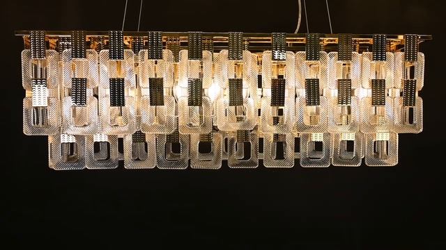 Buckle — невероятно стильная конструкция абажура из оригинальных квадратных стеклянных элементов с эффектом рифления. Не зря линия называется “Букле”, она, действительно, напоминает буклированную фактуру ткани, где металлические фактурные декоры соединяют ее элементы. Широкая линейка коллекции может осветить различные по площади и назначению комнаты в одном стиле.