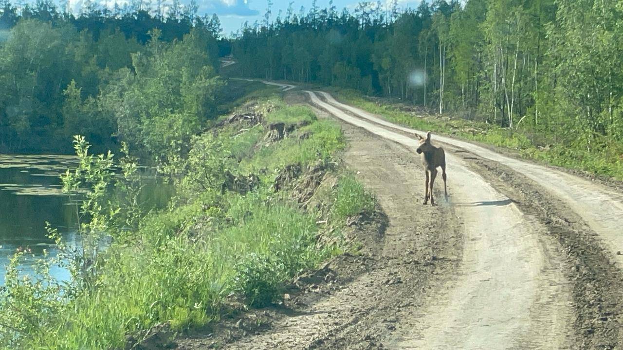 В Усть-Алданском районе Якутии заметили лосиху и двух ее детенышей
