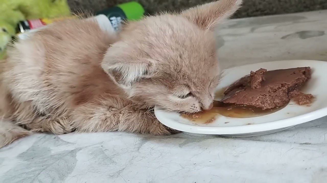 Котенок Лёша еле-еле кушает