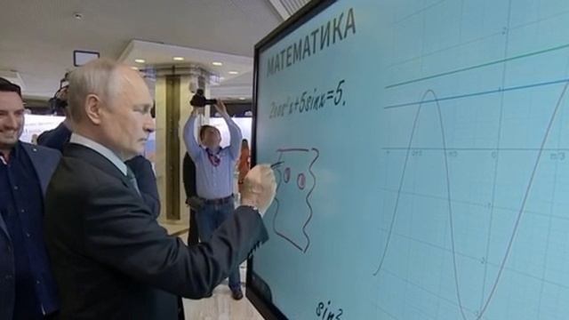 Путин во время поездки на выставку форума нарисовал лицо и оставил автограф на интерактивном экране