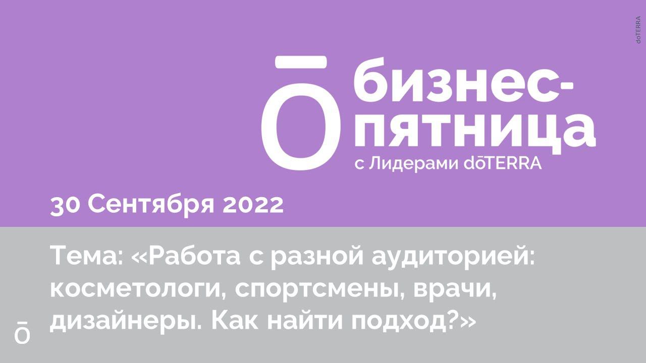 Бизнес-пятница с Лидерами dōTERRA/30 Сентября 2022: РАБОТА С РАЗНОЙ АУДИТОРИЕЙ, КАК НАЙТИ ПОДХОД?