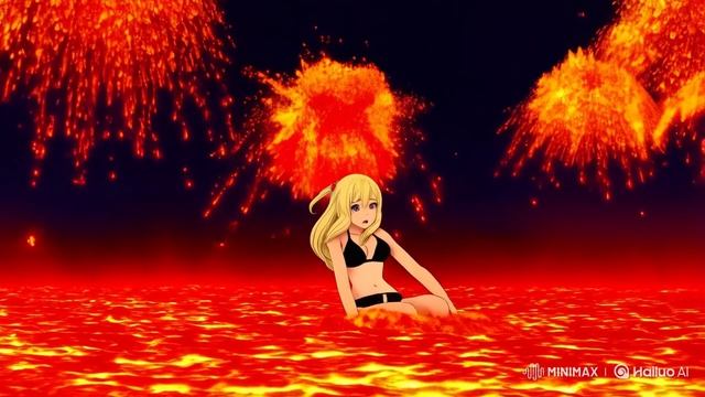 Падение девушки в море раскаленной лавы.