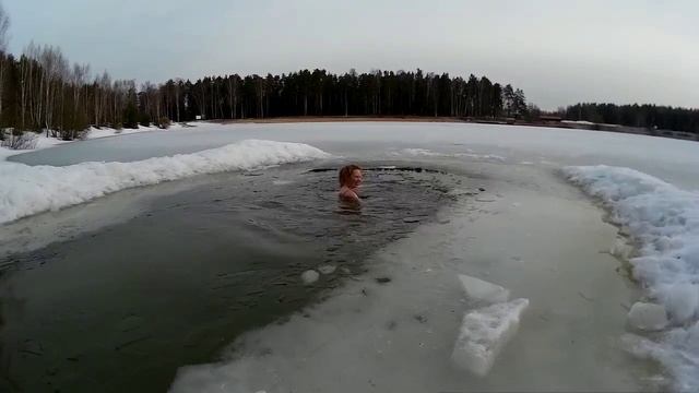 Заплыв в проруби в Черноголовке на озере Южном.