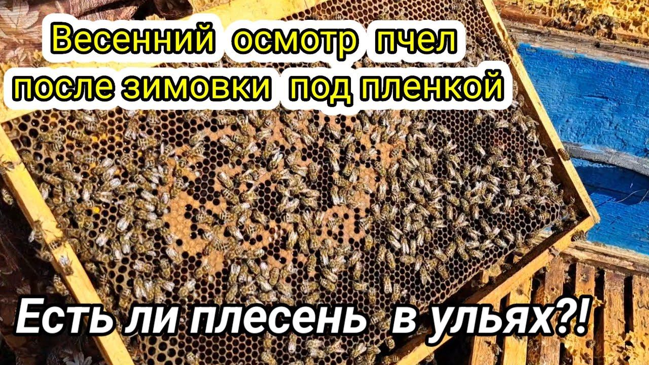 Первый весенний осмотр после зимовки на улице под пленкой! Есть ли плесень в ульях!?