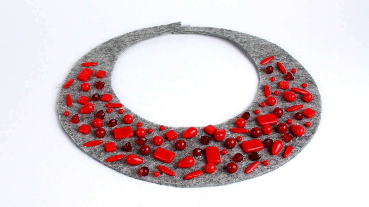Текстильное колье из фетра и бусин своими руками