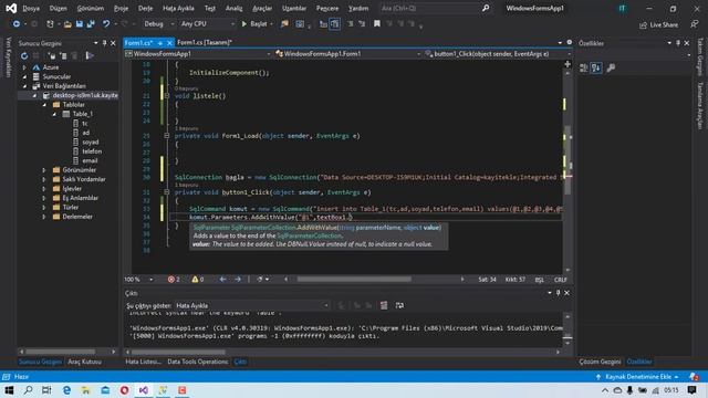 C# windows form ile sql veri baglantısı - kayıt ekleme, kayıt listeleme