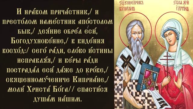 Тропарь и кондак святым Киприану и Иустине