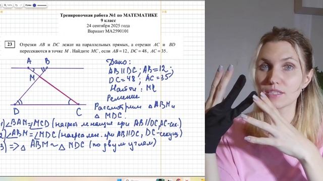 Отрезки AB иDC лежат на параллельных прямых, а отрезки AC и BD пересекаются в точке M.Найдите MC, если AB =12 , DC=48 , AC= 35 #репетиторматематика #огэ #репетиторпоматематике #огэ #математика #репетитор