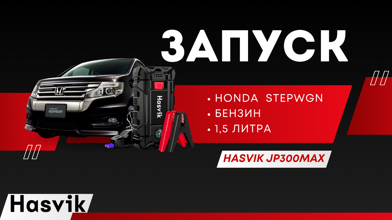 Как запустить Honda Stepwgn с разряженным аккумулятором с помощью пускового устройства Hasvik JP-300Max. Чтобы заказать пусковое устройство, позвоните по телефону 88005119374 или оставьте заявку на сайте hasvik.ru