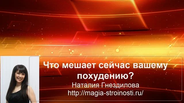 Надо похудеть уже сейчас? Хочется, но не получается? И вполне возможно, что это не нарушения режима или маленькая физическая нагрузка, а ваши эмоциональные реакции по отношению к каким-то ситуациям или людям. Что мешает похудеть? Если вы хотите понять это, посмотрите это видео, а еще вы можете получить совершенно бесплатно психологический видео тренинг "Новый путь к Стройности" http://nata69.justclick.ru/nov_puti