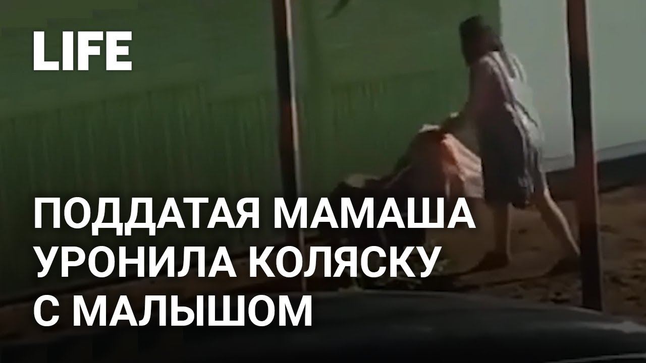 Пьяная мамаша упала и уронила коляску