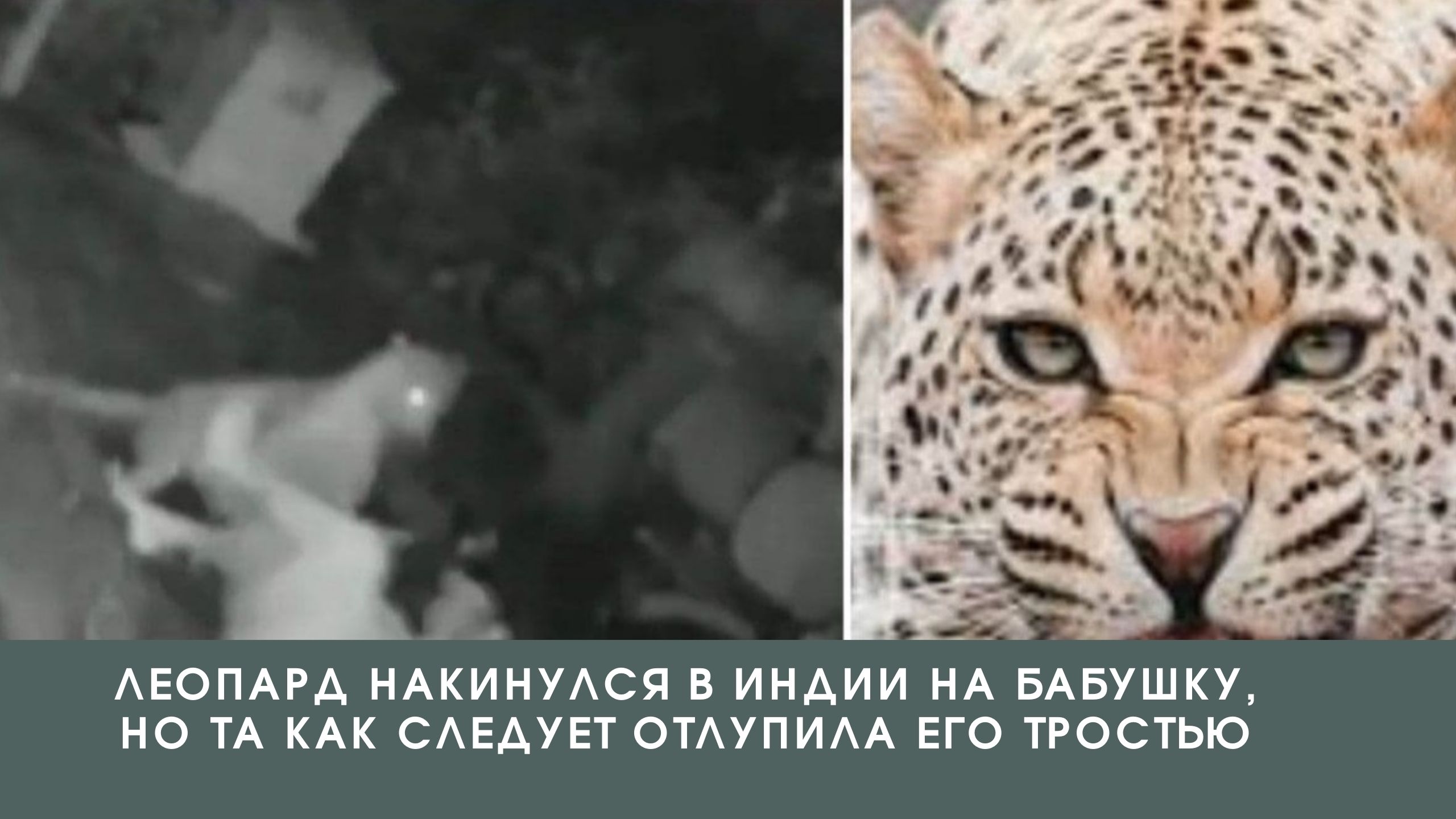 Леопард накинулся в Индии на бабушку, но та как следует отлупила его тростью///