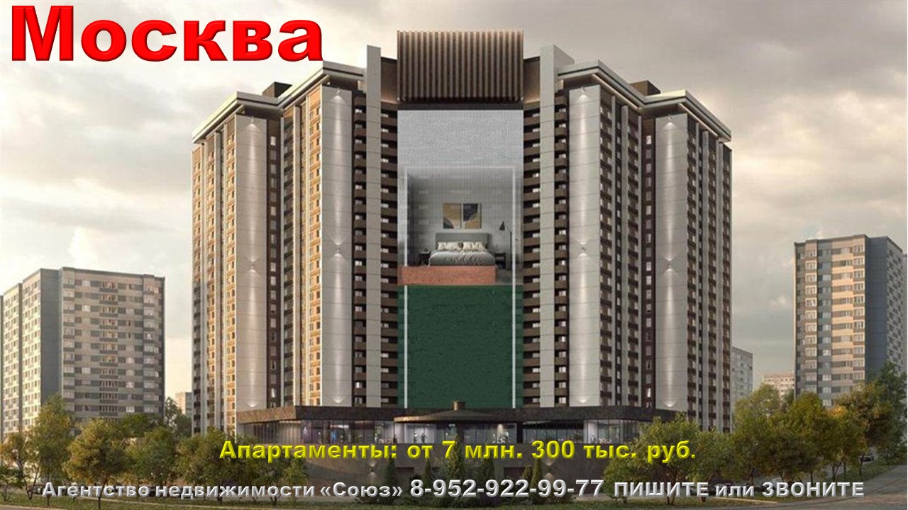 Агентство недвижимости «СОЮЗ» Покупайте: апартаменты в Москве. Ленинский пр., м. Тропарево (15 минут пешком) Агент по новостройкам: 89529229977 (WhatsApp) Цены на апартаменты точно такие же как и у застройщика. Апартаменты продаются БЕЗ РИЭЛТОРСКОЙ КОМИССИИ !!!. Ст. апартаменты: от 7 млн. 300 тыс. руб. Ежемесячный платеж: 42 798 руб. при ставке 8% Площадь общая: 14,01 м2 - 21 м2 Срок сдачи: сдан Срок выдачи ключей: выданы Договор: К-П Тип дома:монолитный Тип отделки: чистовая Парковка: есть Потолки: 3 м. Преимущества:Транспортная доступность. Развитая инфраструктура. Закрытый охраняемый паркинг. Места для работы и отдыха. Фитнес-клуб с бассейнами. Описание комплекса:Комплекс расположен на одной из крупнейших радиальных магистралей города – Ленинском проспекте, который соединяет Центральный, Южный, Юго-Западный и Западный административные округа Москвы. От комплекса можно добираться до нужных мест быстро и без пробок. Всего в 8 км расположен район Хамовники, в 15 минутах езды аэропорт «Внуково», а за 20 минут легко доехать до самого центра столицы. Здесь обновленные развязки МКАД с Мичуринским и Ленинским проспектами, остановки общественного транспорта и станции трех разных линий метро: «Юго-Западная», «Тропарево» и «Коньково». С 5 по 22 этаж размещена зона апартаментов. На каждом пятом этаже предусмотрены холлы с комфортными местами для работы и отдыха. С 1 по 4 этаж - цокольный этаж. Расположена основная инфраструктура: зона лобби с консьерж-сервисом, рестораны, кафе и кальянные, торговый и медицинский центры, конференц-залы, коворкинги и др., а также круглосуточный фитнес-клуб с бассейнами и SPA-комплекс с финской сауной, хамамом и джакузи. Комплекс станет долгожданным местом притяжения сотни москвичей, ведь на данный момент в районе Тропарёво-Никулино нет подобных современных комплексов с такой развитой и разнообразной инфраструктурой. Для предпринимателей здесь особые преимущества – конкуренция в этой локации минимальная, а поток клиентов – стабильный и платежеспособный. К услугам резидентов, посетителей и сотрудников комплекса — закрытый охраняемый паркинг. Он рассчитан на 200 машиномест, включая места не только для легковых автомобилей, а также для крупногабаритного транспорта, например, туристических автобусов. В комплексе резидентам и гостям доступен широкий выбор мест для приятного отдыха, покупок, гастрономических открытий и новых знакомств: итальянский ресторан «Piccante» с барной зоной, ресторан «Kalinka» с форматом обслуживания «шведский стол», караоке-клуб «Оркестра», кафе европейской кухни «Bon Voyage», корейский ресторан «Менга», кальянные и лаунж-зоны. А также 2 бассейна: взрослый с 4 дорожками и детский, тренажерный зал, зал восточных единоборств и бокса и SPA-салон.