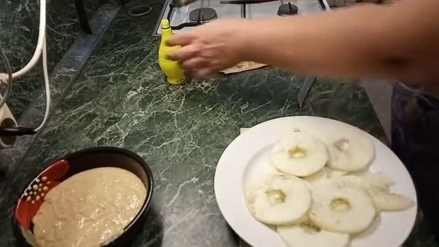 кефир100мл. сахар 1стол.ложка, яйцо куриное 1шт.мука с отрубями1стакан,соль,сода 1ч.ложка,1,5стол.ложки масло растительное, яблоки2шт.