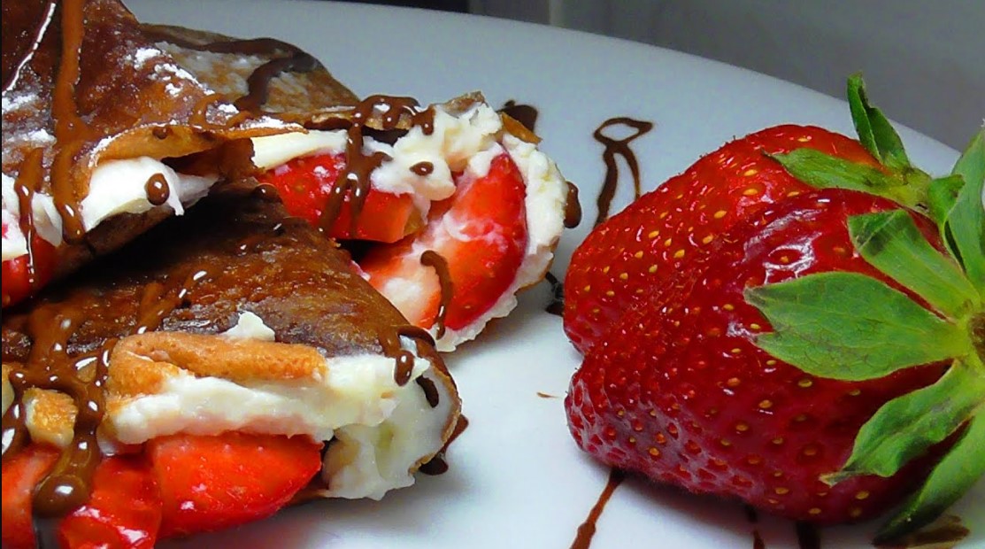 #ШОКОЛАДНЫЕ #БЛИНЧИКИ. #Chocolate #crepes, #pancakes. Предлагаю изумительно вкусные,нежные,тающие во рту, шоколадные блины.Рецепт очень простой,легкий и быстрый. Для этого необходимо: Мука-1 стакан-250 гр Молоко -350 мл Шоколад-80 гр Яйца- 2 шт. Какао- 2 ч.л. Разрыхлитель- 1 ч.л. Соль- 1\2 ч.л. Растопленое сливочное масло- 4 ст.л. Сахарная пудра – по вкусу Для начинки необходимо: Маскарпоне Сахарная пудра Клубника Ванильный экстракт В просеяную муку добаляю просеяное какао,разрыхлитель,соль,сахарную пудру и венчиком все хорошо перемешиваю. Растапливаем масло.В разогретое молоко(взять 200мл) добавить кусочки шоколада.Все хорошо размешать и снять из газа.Можно все ингредиенты растопить в микроволновке. Взбиваем яйца.В шоколадную смесь добавляем остаток молока (150 мл).В миску с мукой добавляю яйца,шоколадную смесь и все перемешиваем миксером.Даем тесту отдохнуть 30 минут,можно больше. Выпекаем блины на сковороде смазанной растительным маслом. Для начинки смешиваем маскарпоне с ванильным экстрактом,сахарной пудрой и все хорошо перемешиваем.Нарезаем клубнику пластиночками. Готовый блинчик смазываем начинкой,укладываем клубнику и складываем конвертиком.Украшаем сахарной пудрой и шоколадом. Блины готовы!!Приятного аппетита!!!