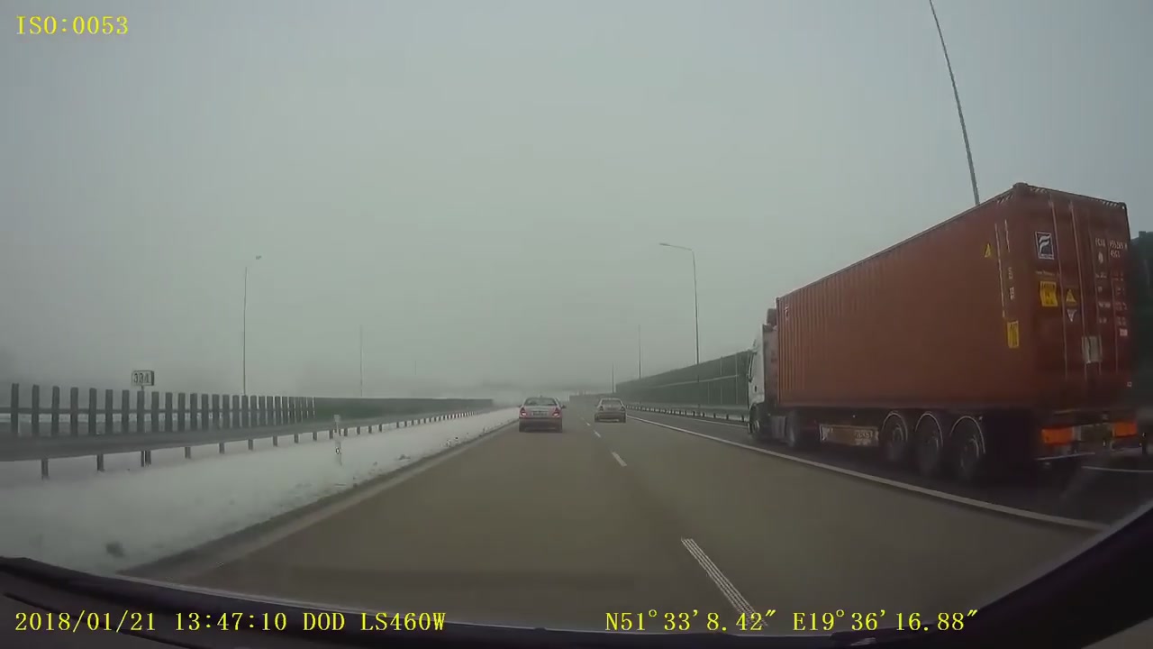 21.01.2018. Польша. Автомобиль BMW протаранил на скоростной трассе Шкоду.