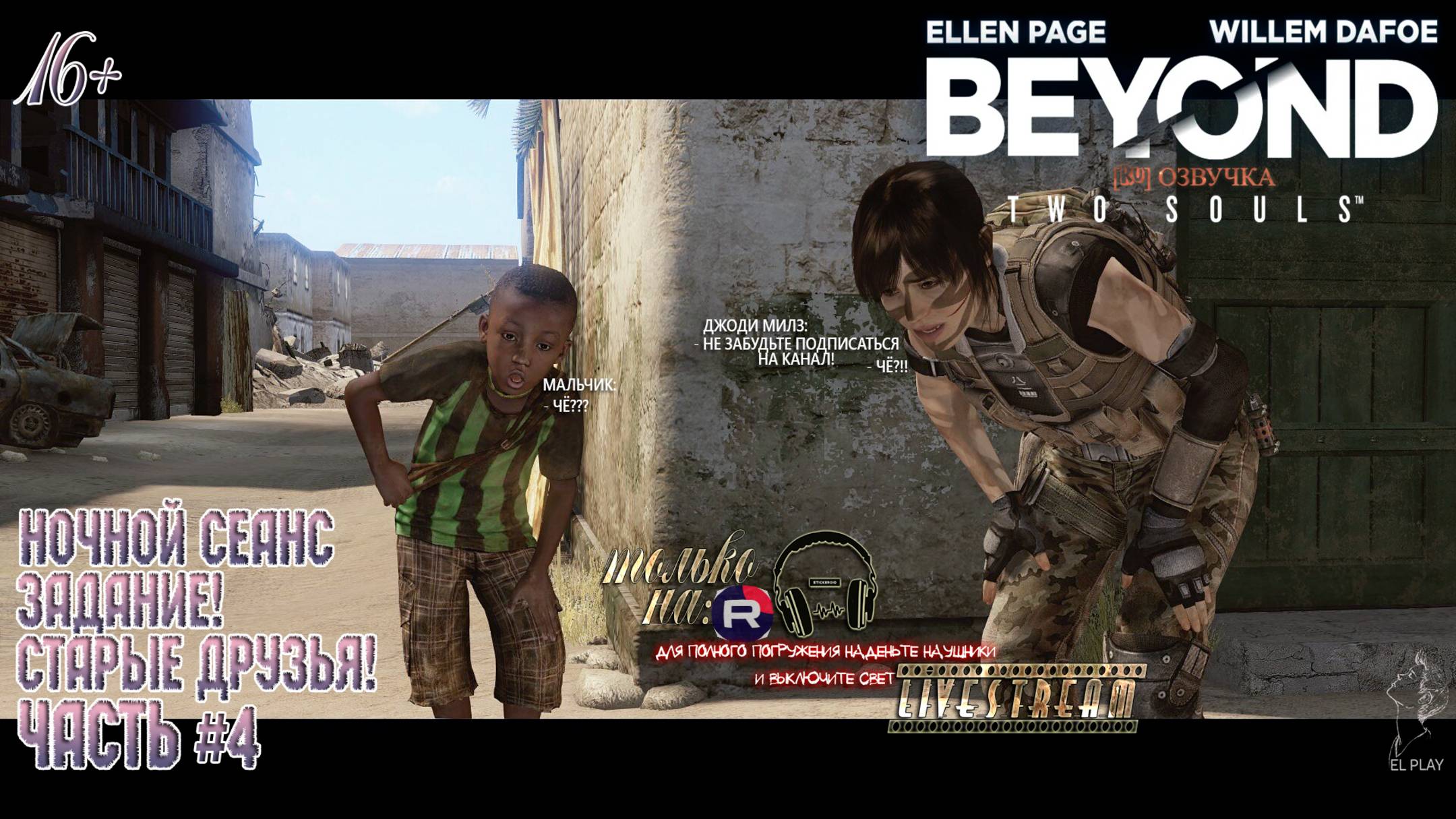 Beyond: Two Souls — это нашумевшая игра в жанре психологического триллера. Она поведает нам историю о загадочной девушке Джоди. Власти желают заполучить ее способности и приглашают на обучение, но происходит ужасный взрыв. Сюжет Главная героиня по имени Джоди Холмс, обладает весьма серьезными экстрасенсорными способностями. Айден — ее невидимый друг, но есть не менее невидимые враги, которых называют чудовищами. Человечество изобретает адронный коллайдер, который открывает врата за грань. Существа прорываются через врата и пытаются уничтожить все живое на планете. Помешать им в этом, смогут только Джоди и Айден. Игроку предстоит увидеть всю жизнь девушки, от ее рождения и до взросления. История будет постоянно перескакивать к разным ключевым моментам из жизни. Айден будет пытаться вытянуть свою подругу из постоянных проблем, появляясь по зову Джоди. Геймплей Игра обзавелась обновленной системой, где игрок должен, как бы продолжать движение героини с помощью правого стика, больше никаких кнопок во время экшен-сцен. Новый подход обеспечивает полное погружение в происходящее, чтобы геймер успевал следить за всем в кадре. Большую часть задач в стелс миссиях, все также выполняет Айден. И даже, когда героине сказали действовать тихо и не привлекать внимание, никто не мешает вселиться в солдат и стрелять по своим, ведь другие не пойдут на звуки выстрелов и криков напарников. Линейная игра немного растеряла вариативность, здесь единичны те решения, которые повлияют на дальнейший ход истории. Игра напоминает симулятор, ты не продвинешься дальше, пока не сделаешь то, что задумали разработчики в этом месте. Эпизодическая система подачи сюжета, действительно крутая. Игрока бросают в разные моменты жизни девушки, ради того, чтобы только в конце игры, он смог собрать всю историю, как пазл. Я рад😊, что вы смотрите мой стрим🎮🎙️🎧Если вам нравится мой контент▶️и вы хотите поддержать меня, вы можете нажать💣[ПОДДЕРЖАТЬ]💣 или по ссылке внизу Друзья, благодаря вашей поддержке💚🚀🙏я могу создавать для вас ещё более качественный контент▶️🎥 Подписывайтесь на канал!✅Если вы еще не✔️подписаны, нажмите на кнопку✅"Подписаться"✅и включите🔔уведомления, чтобы не пропустить новые🎥 видео. Ставьте❤️лайки. Ваши💚лайки помогают продвигать мой контент и делают его более заметным. Делитесь🎥видео. Расскажите о моем канале своим друзьям и знакомым. Чем больше людей узнает о нас, тем быстрее мы сможем развиваться. Оставляйте📝комментарии. Ваше мнение очень важно для меня! Делитесь своими мыслями и предложениями по улучшению контента. Спасибо🙏🤝, что вы со мной! Ваша🙏поддержка делает мой▶️канал лучше! Не забывайте ставить знак [РАКЕТУ] в топ) НЕ ЗАБЫВАЙТЕ ПОДПИСЫВАТЬСЯ НА КАНАЛ) Чтобы🎮стримы посмотрели все и дяди и тёти, и друзья, и все кому нравится))) Искренне ваш🎧EL➤PLAY🎮) Подписывайтесь на канал😃ставьте лайки, комментируйте и друзьям в контакте рассказывайте и в группу https://vk.com/club222484094 вступайте, там группа есть у меня, ну всё ребята всем пока до встречи))) Ссылка https://t.me/ELPLAYSTREAM на чат ТГ☺😌🎧🎮🎙 Если вы хотите поддержать мой канал, вы можете сделать это через https://www.donationalerts.com/r/salihov19 Каждая ваша поддержка очень важна для меня!🙏 ➤Rutube [ПОДДЕРЖИ СТРИМЧИК КОПЕЕЧКОЙ] Трек:🎶🎧Beyond Two Souls Saint Gobin