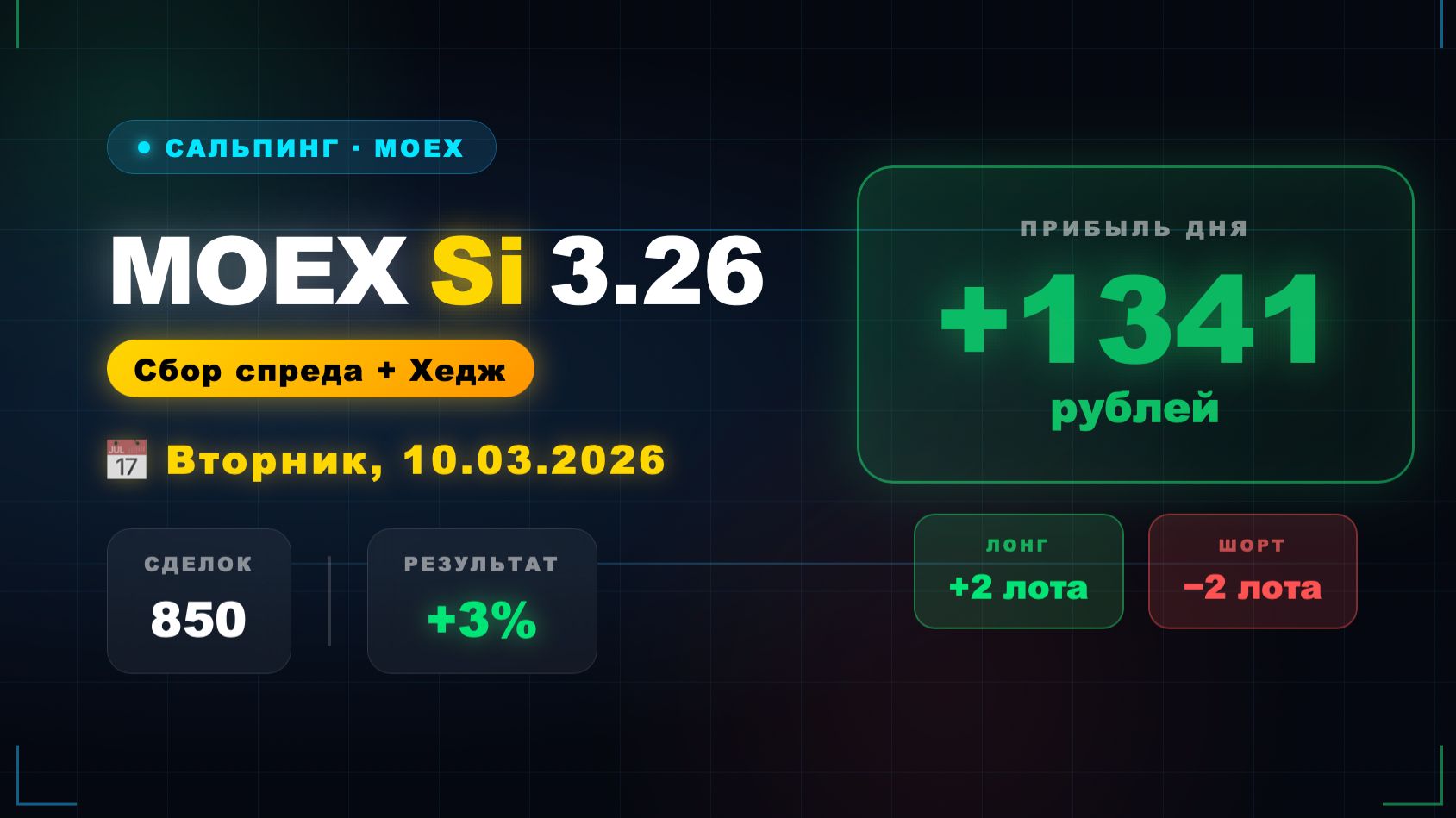 МосБиржа Si 3.26 — 3% от депо | 850 Сделок | Вторник 10.03.2026