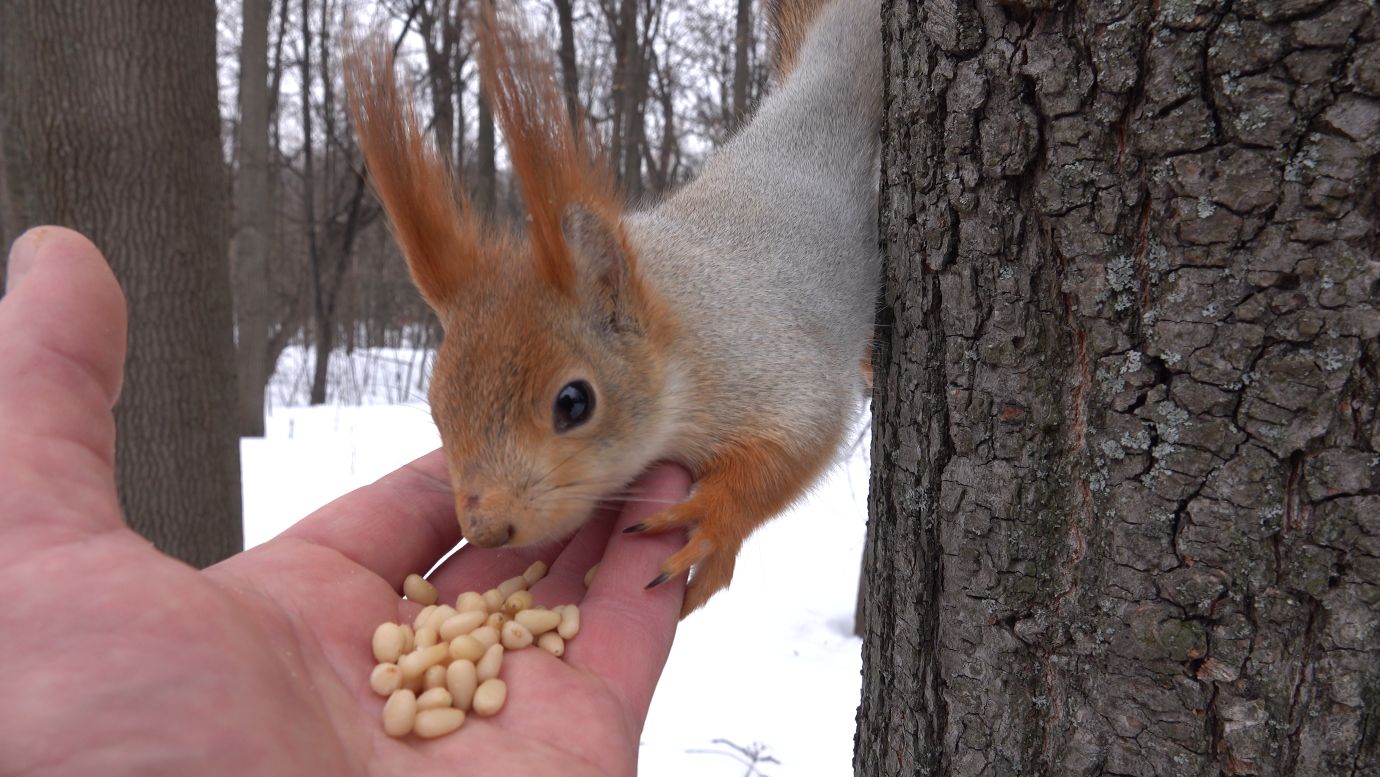 Покормил беременную белку