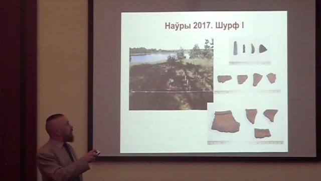 Выступление Плавинского Николая Александровича, кандидата исторических наук, доцента заведующего кафедрой социально-гуманитарных наук и устойчивого развития Международного государственного экологического института имени А. Д. Сахарова Белорусского государственного университета, с докладом «Комплекс пахавальных і пасяленчых помнікаў эпохі Сярэднявечча каля вёскі Наўры Мядзельскага раёна (папярэднія вынікі даследванняў 2017 года)». VII Международная научно-практическая конференция «История и археология Полоцка и Полоцкой земли».