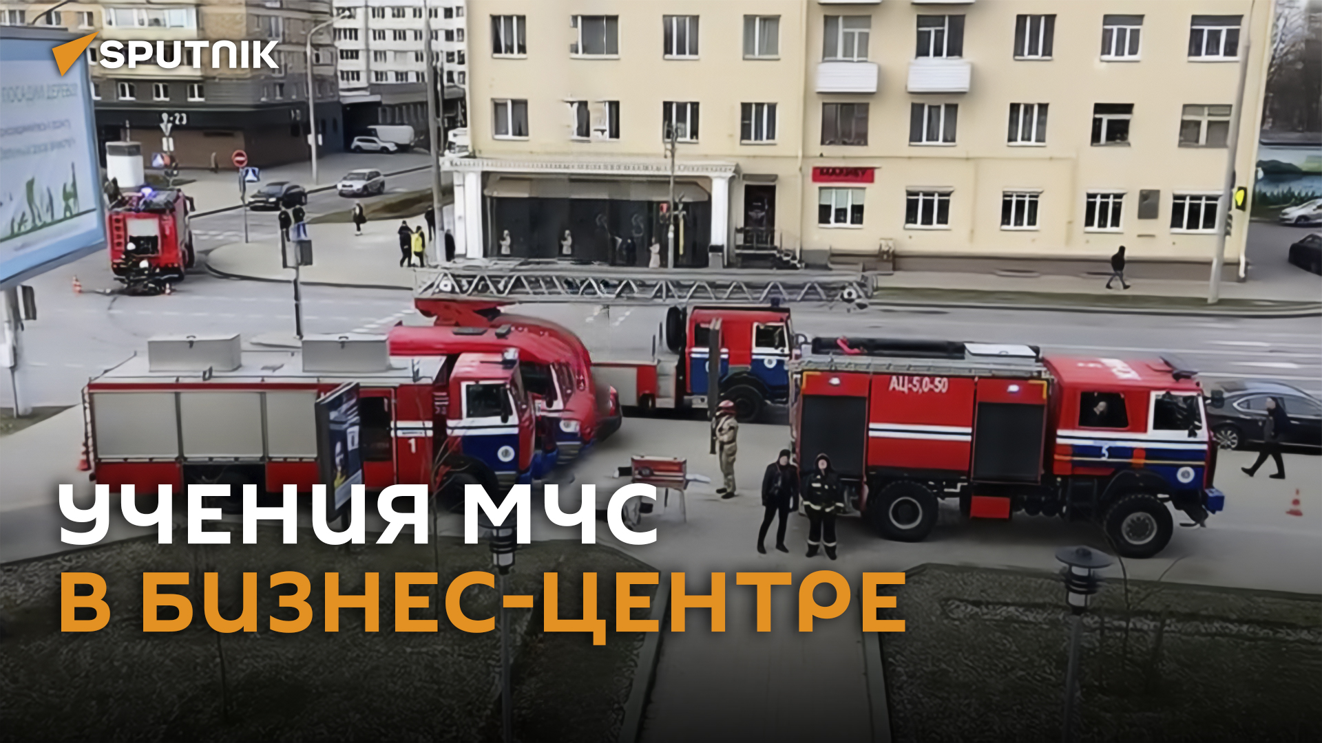 Вокруг здания бизнес-центра днем во вторник собралось большое количество спецтехники МЧС, спасатели проводили тактико-специальные учения. За тренировкой наблюдал корреспондент Sputnik.