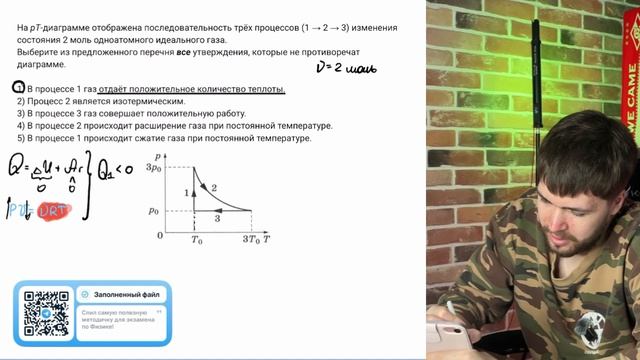 На рТ-диаграмме отображена последовательность трёх процессов (1 → 2 → 3) изменения - №37259