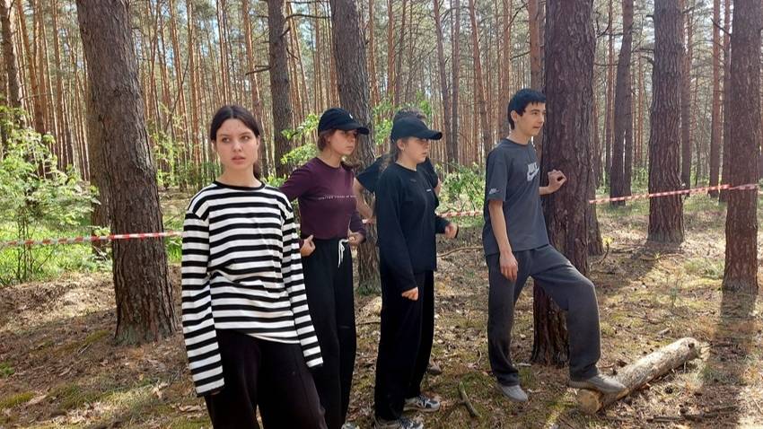 Туристическая полоса препятствий входит в программу слета-соревнований "Школа безопасности". Проходит полосу старшая группа.