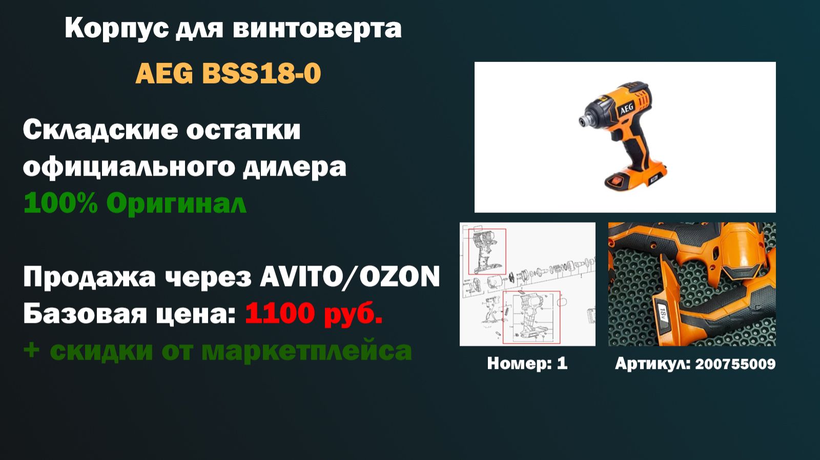 Оригинальный Корпус 200755009 для ремонта аккумуляторного винтоверта AEG BSS18-0