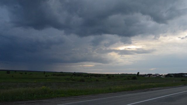 Где-то между Екб и Каменском-Уральским.Чудом удалось на мото объехать сие атмосферное порождение Сатаны. 22 июня 2017.