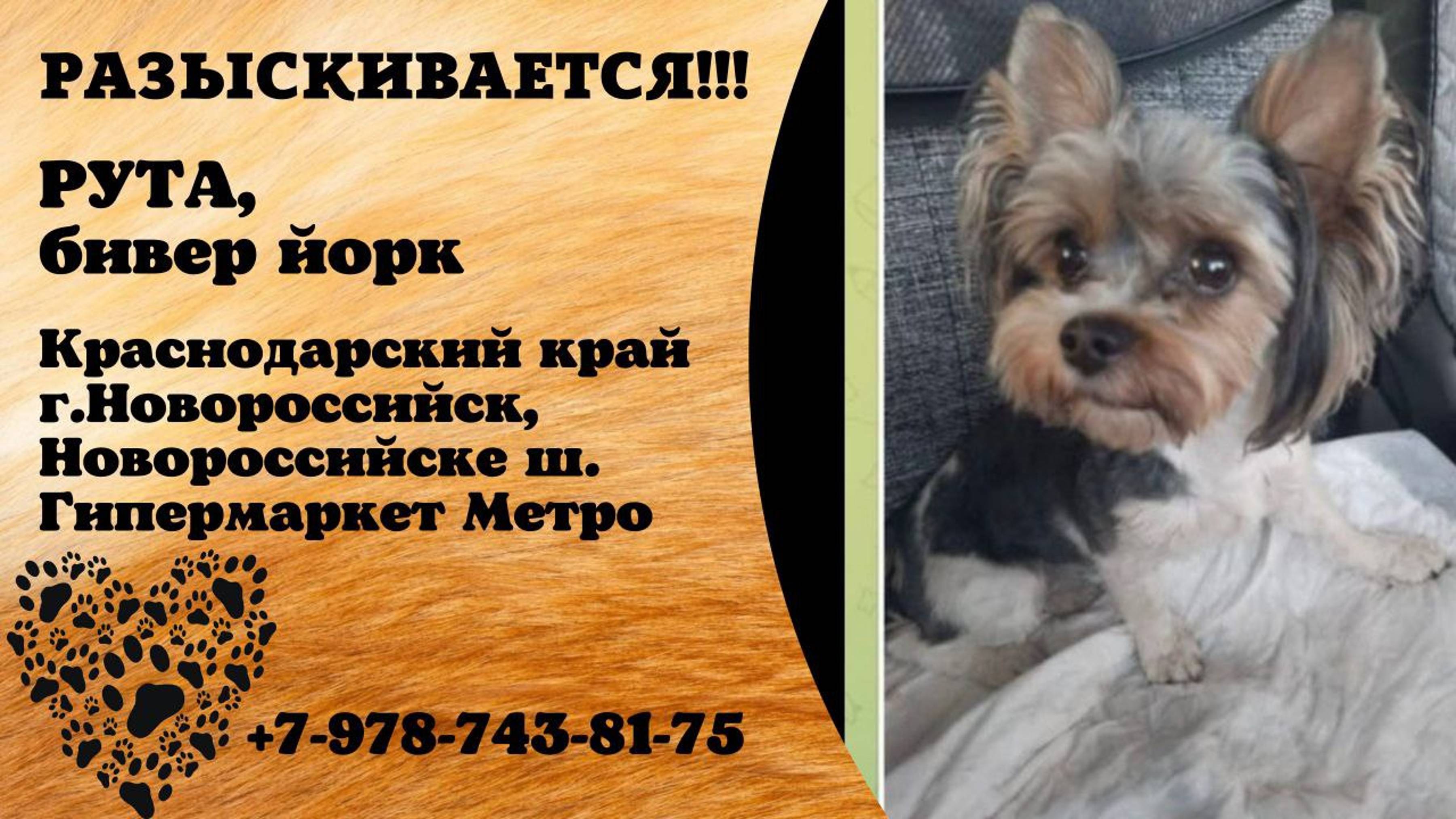 Пропала собака! РУТА. Бивер-йорк. Краснодарский край, г. Новороссийск