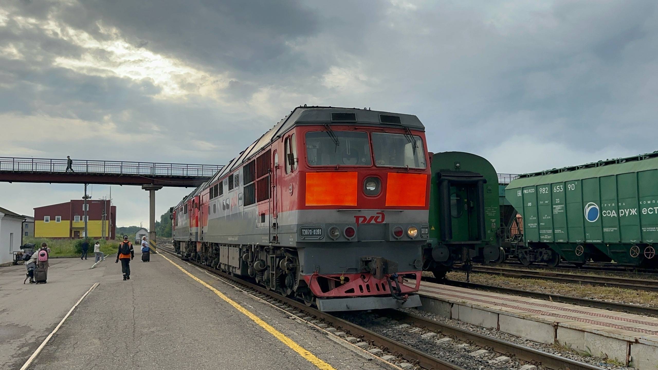 «Два тапка!» Сплотка тепловозов ТЭП70БС - 330 и ТЭП70 - 0391 на ст.Великие Луки, июль 2025 года