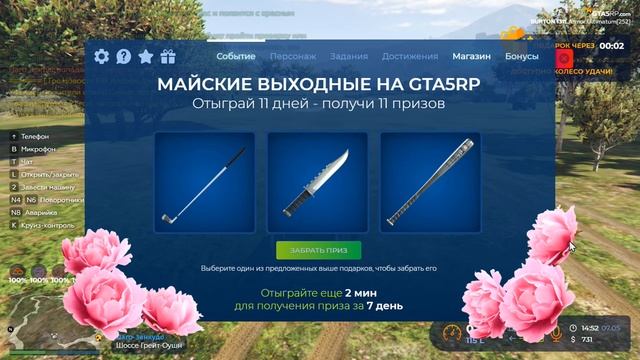 Событие «Майские выходные» — Каждый день на протяжении 11 дней проводите в игре как минимум 6 часов и получайте секретные призы, которые становятся ценнее и больше с каждым ранее полученным призом. — Отсчет каждого игрового дня в рамках события ведется от ежедневного рестарта в 07:00 по МСК, начиная с 1 мая 2025 года. — Все 11 призов смогут получить только те игроки, которые ежедневно проведут в игре как минимум 6 часов. #ультиматум21RUS #burton #гта5рп #gta5 #gta5rp #гта5 #Майские_выходные
