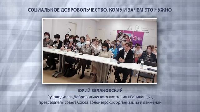 Выступление Юрия Белановского, руководителя Добровольческого движения «Даниловцы», председателя совета Союза волонтерских организаций и движений, на Первом форуме социального добровольчества в Волгограде. Панельная дискуссия форума была была посвящена векторам развития социального добровольчества. Эксперты обсудили вопросы организации волонтерской помощи в учреждениях паллиативного профиля, обучение волонтеров, успешный опыт внедрения системной волонтерской помощи в медицинских и социальных учреждениях региона. Организаторы форума: ВРДМОО "Участие" совместно с ГБУ ВО "Центр молодежной политики"