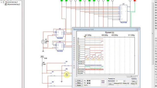 Исследование работы мультиплексора SN74LS153D по временным диаграммам в Multisim 14.1