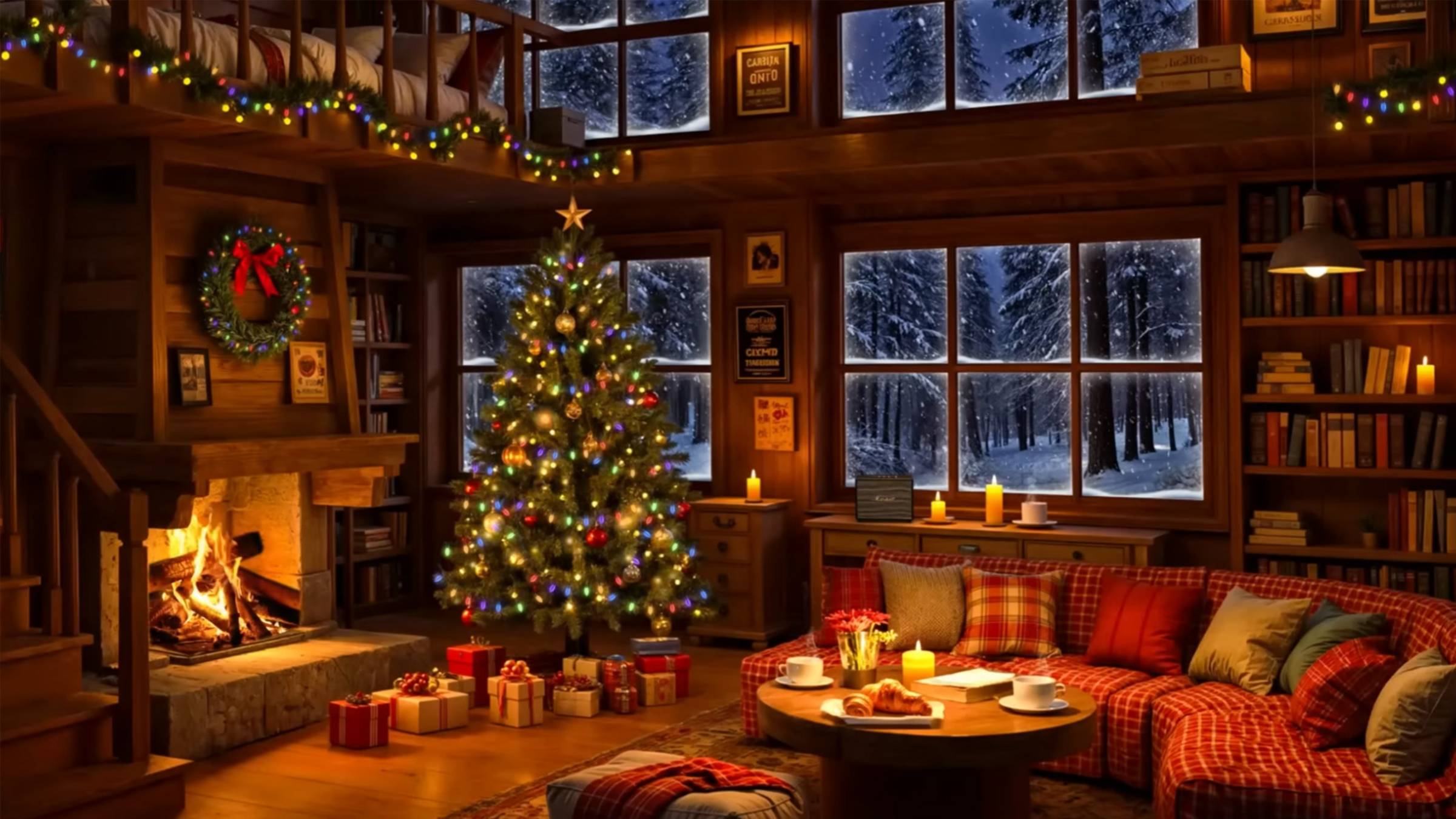 Самое уютное видео для зимнего вечера. Мягкая спокойная музыка и потрескивание камина.