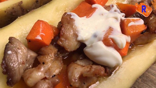 Oh, this dish can be safely called a dining masterpiece! A whole, large, fragrant OVEN STRAWED POTATO that is covered with a unique lid to keep the flavor! The dish is very easy to prepare! Ingredients available. But it turns out a masterpiece from the oven, when the POTATO WITH FILLING impresses with its magnificence! Invite your friends to a potato party soon - everyone will eat such a dish with pleasure! О, это блюдо можно смело назвать обеденным шедевром! Целая, большая, ароматная ФАРШИРОВАННАЯ КАРТОШКА В ДУХОВКЕ, которая прикрыта уникальной крышкой, чтобы сохранить аромат! Готовится блюдо очень просто! Ингредиенты доступные. А вот получается шедевр из духовки, когда КАРТОФЕЛЬ С НАЧИНКОЙ впечатляет своим великолепием! Приглашайте скорее друзей на картофельную вечеринку - такое блюдо все будут есть с удовольствием!